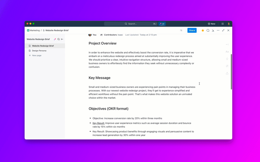 ClickUp Brain takes care of the heavy lifting. Just drop a prompt like: