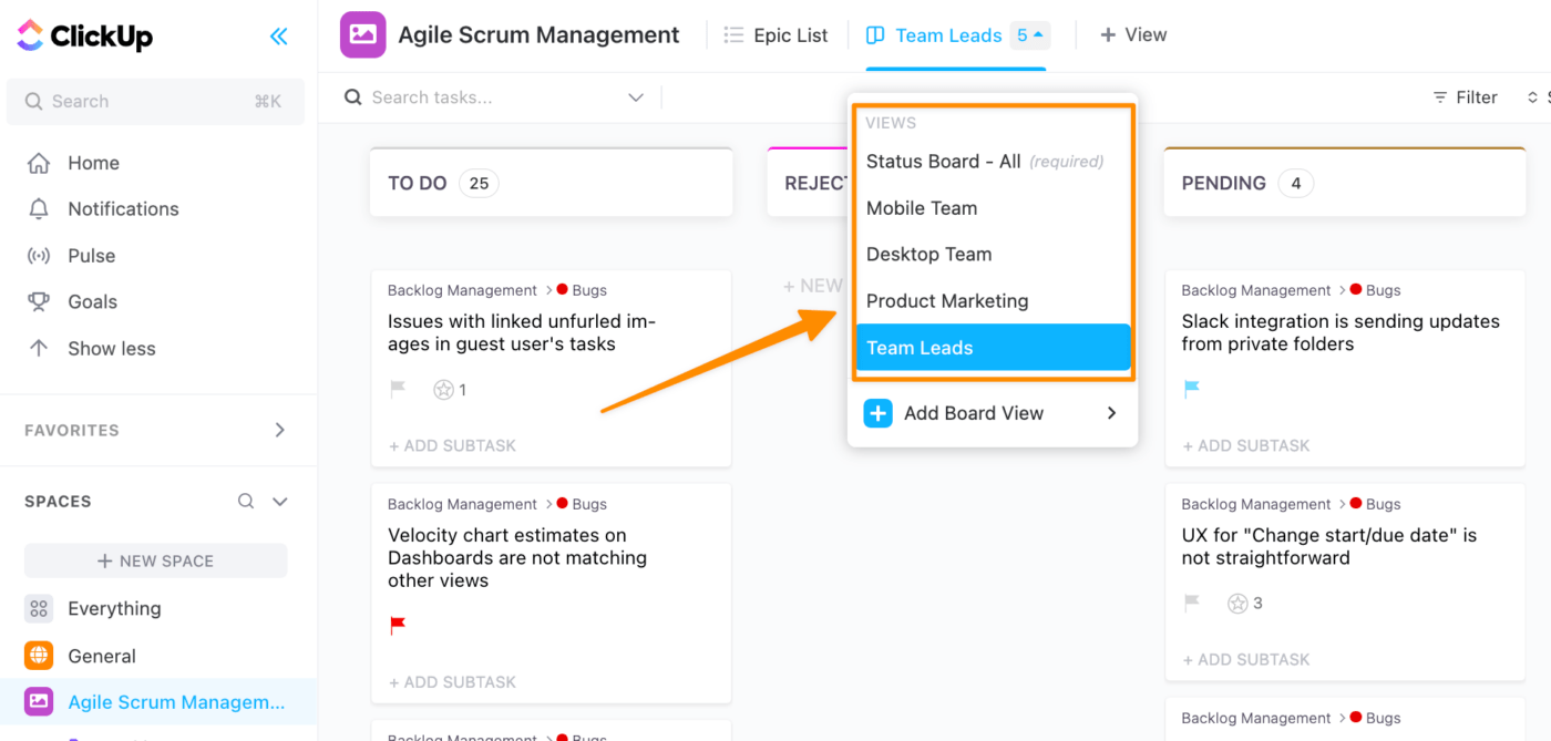 In stand-up meetings, people avoid staring at a static spreadsheet on their screens. They prefer viewing the information relevant to them, and this is why using ClickUp is so useful! In a few clicks, create Kanban boards for different audiences or criteria once. These public board views will then live as an everyday resource before, during, and after meetings.