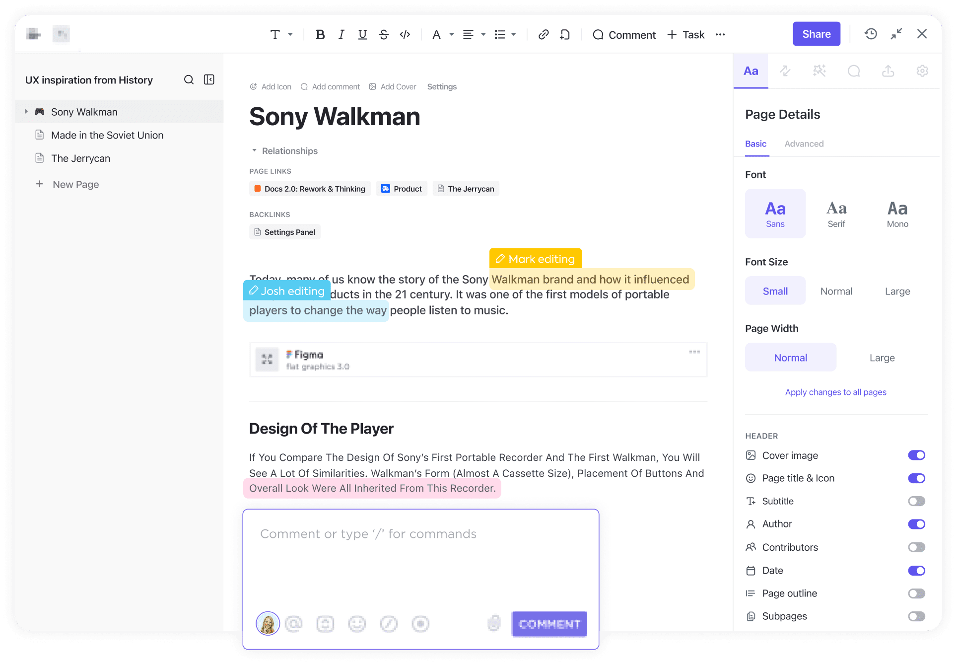 Create beautiful Docs, wikis, and more—then connect them to workflows to execute on ideas with your team. Assign comments with action items, chat in real-time, share attachments, and never miss a beat with notifications that bring everything in one place.